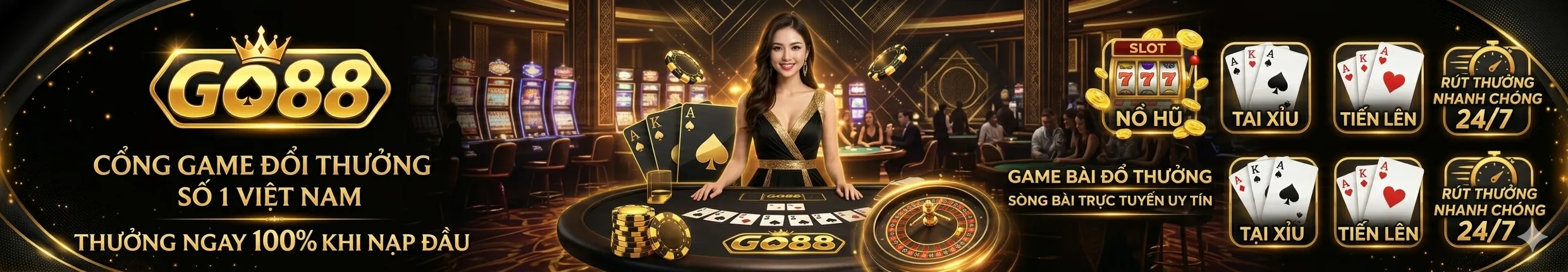 Go88 gây ấn tượng mạnh ngay từ cái nhìn đầu tiên với phong cách thiết kế sang trọng, lấy tông màu vàng đen làm chủ đạo tạo cảm giác quyền lực. Mọi chi tiết đồ họa trong các sảnh game đều được chăm chút tỉ mỉ bằng công nghệ 3D, mang lại cho bạn cảm giác chân thực như đang ngồi tại các sàn đấu trí quốc tế.